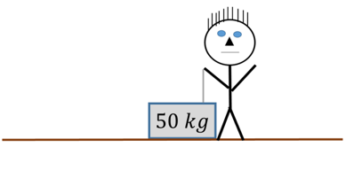 Second Example: A 50 Kg box is resting on the ground. Someone is pulling up on a string connected to a box. He pulls with a force of 100 Newtons. The box does not move.