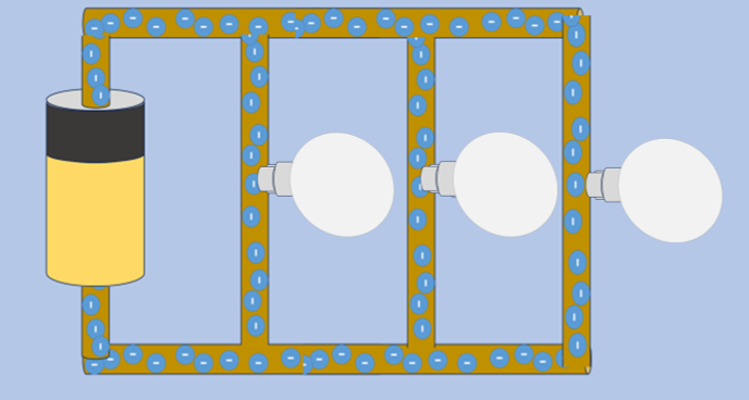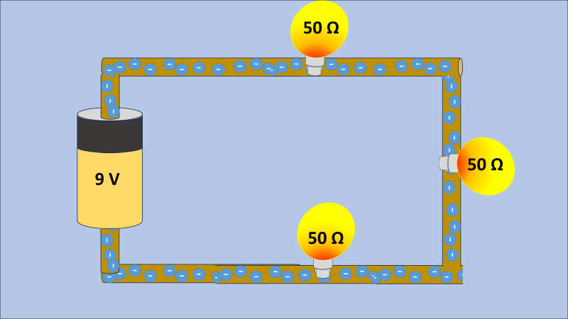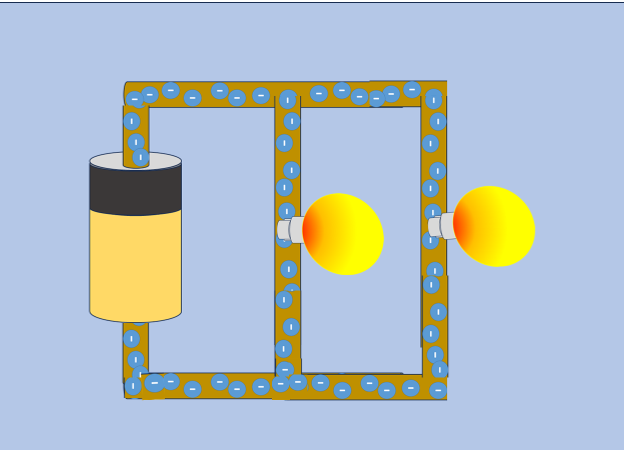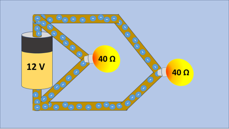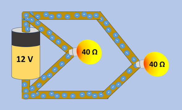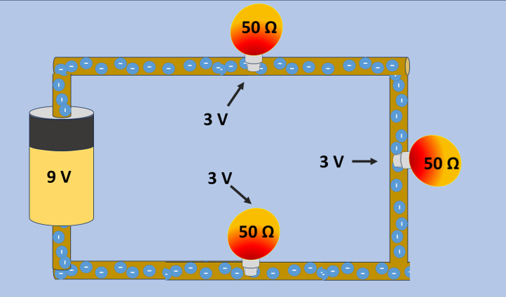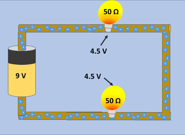 Explanation. The hills set up in this video are meant to resemble a parallel circuit. First, Sargent drop is lifted up to the top of the hill. The battery provides electric potential energy to the circuit much the same way a person would get gravitational potential energy from being lifted up to the top of a hill. Once on top of the hill, he will lose all of his gravitational potential energy when he goes off a drop. In this setup, no matter which drop he chooses, the drop is the same. He will loose all of his height. You can think of his gravitational potential energy as an electrical charge's electrical potential energy. You can think of his height as the voltage in a circuit. A parallel circuit works the same way. An electric charge will lose all of its electrical potential energy by going through a light bulb. All light bulbs in the circuit lead to zero potential energy. That is why each light bulb has the same voltage, and that voltage is equal to the voltage of the battery.