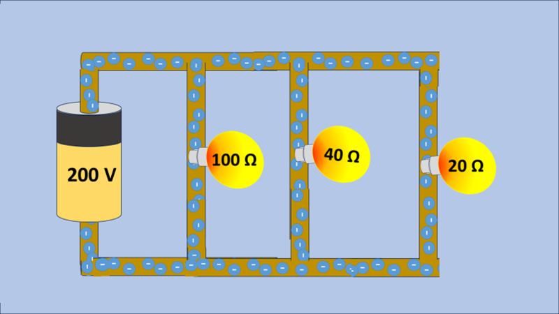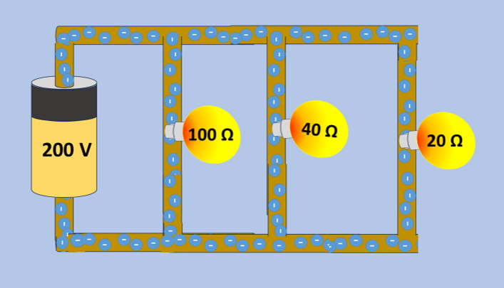 In this example, we are given the voltage of the battery and the resistance of all three of the lightbulbs