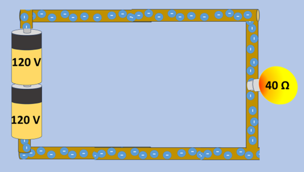 Explanation. The hills set up in this video are meant to resemble a series circuit. First, Sargent drop is lifted up to the top of the hill. The battery provides electric potential energy to the circuit much the same way a person would get gravitational potential energy from being lifted up to the top of a hill. Once on top of the hill, he will lose all of his gravitational potential after going down a series of jumps. In this setup, the height of the three drops added together equal the height of the lift. You can think of his gravitational potential energy as an electrical charge's electrical potential energy. You can think of his height as the voltage in a circuit. A series circuit works the same way as this picture. An electric charge will lose all of its electrical potential energy by going through a series of light bulbs. The voltage drop of the three light bulbs in the circuit add up to the voltage of the battery.