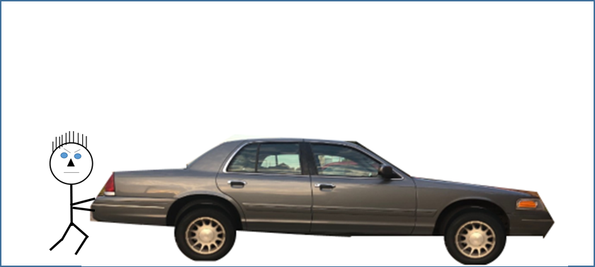 Mr. Stickman pushes his car. He pushes with a force of 500 N for 8 meters. It takes 40 seconds to push the car this distance.