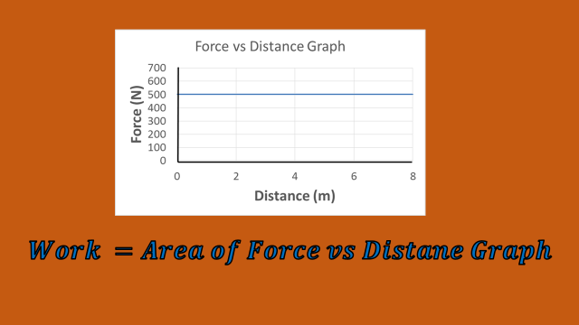 Work is equal to the area under a Force vs Time graph. This method allows us to find work in more complex situations, such as when force is not constant. Here is an example: