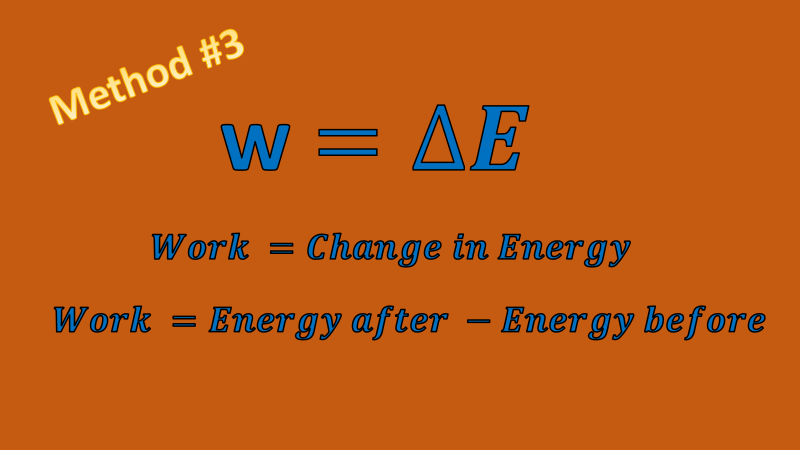 Doing work on something causes a change in energy for the object that is having work done to it. An object will gain exactly as much energy as the work that is done on it. We can use this fact to figure out how much work is done on something. Finding the change in energy is simple: Energy after the work - Energy after the work. Here is an example: